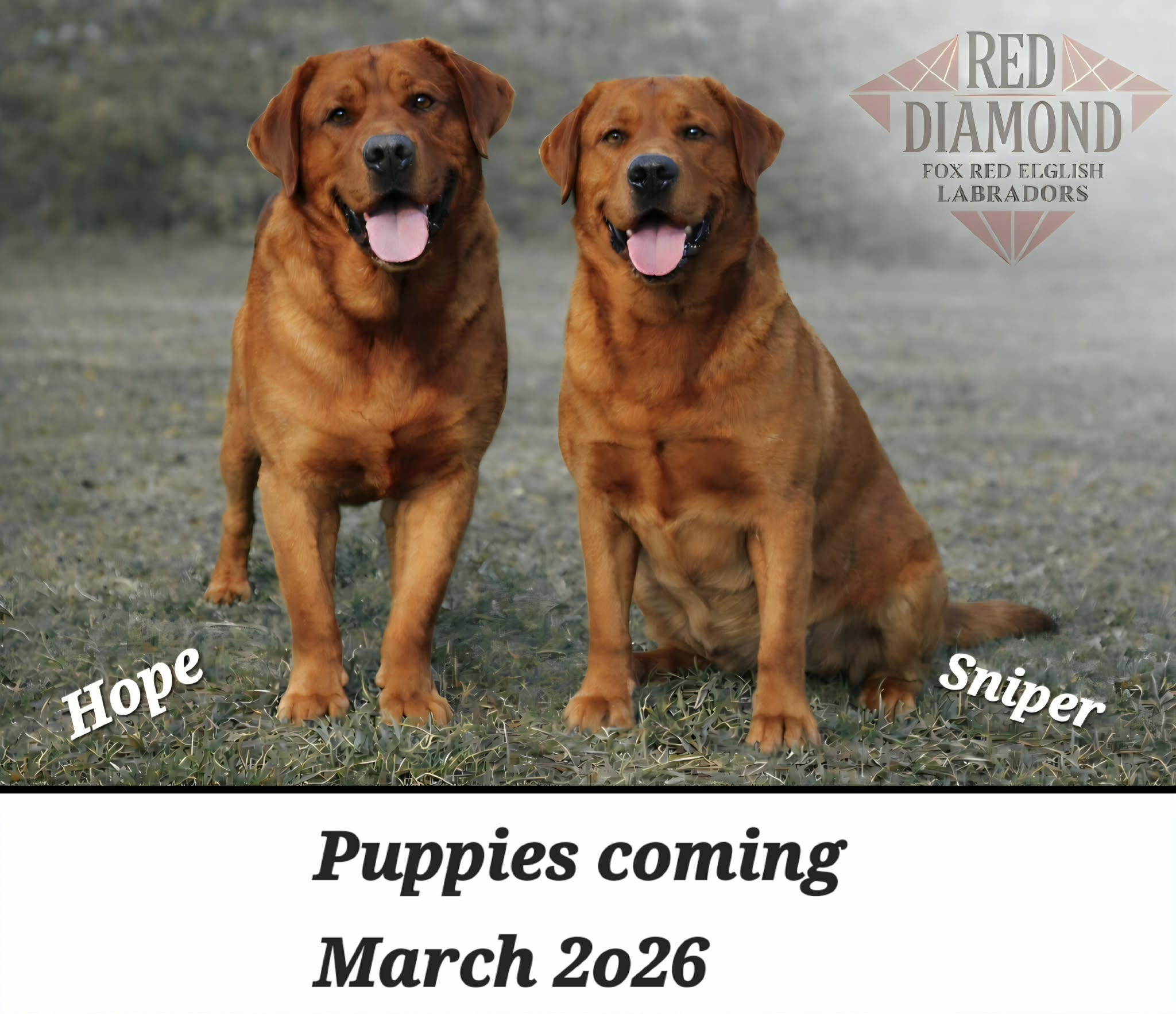 We are excited to announce an upcoming pairing between two dogs who exemplify what we believe fox red Labradors should be: correctly structured, sound in mind and body, and fully health tested. This breeding brings together beautiful headpieces, balanced structure, and proven health, with both parents holding identical clear DNA panels.